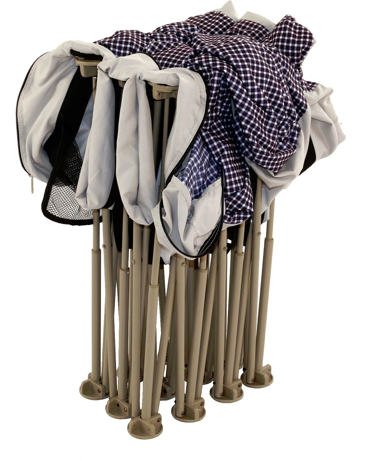 - Compact, lightweight high-tensile steel frame expands into a bed with ease