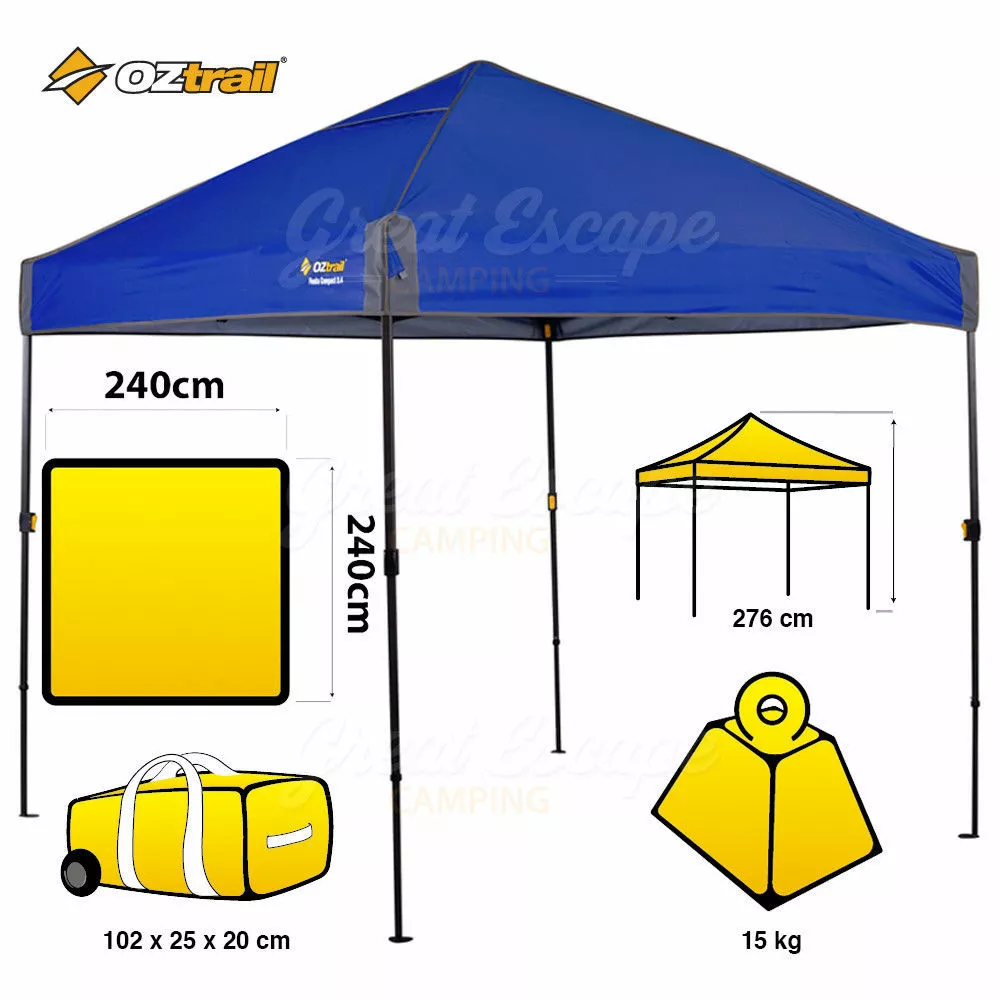 The OZtrail Fiesta Compact 2.4 Gazebo is portable, quick to erect power coated frame, making it a favourite for backyard BBQ shelter, and has an externally bound roof line seam to provide the tension in the canopy. The large roof vents allow for improved ventilation and wind dissipation. The triple-layer (600 deniers) polyester reinforcing points in key wearing locations target specific points to protect the canopy material! With a heavy duty wheeled carry bag for easy transportation and protected storage, the OZtrail Fiesta Compact 2.4 is perfect for your next adventure!