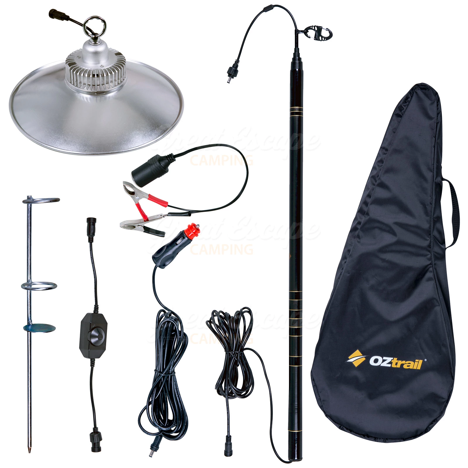 - Approximately four metres tall when fully extended with the fibreglass pole, the fibreglass pole allows the light to shine directly over the campsite