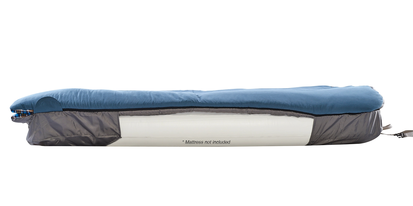The complete camp bedding in a bag, tailored to fit snugly onto your queen camping mattress. With a flannel cotton lining, an all-cotton outer cover and 300gsm polyester filling quilted into position to ensure even distribution and warmth.